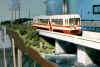 überquert als Personenzug die Vorflutbrücke |
